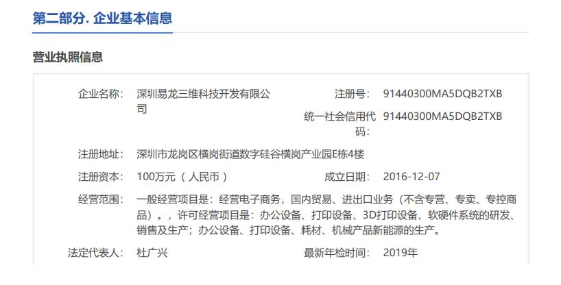 深圳易龍三維科技開發(fā)有限公司于2016年12月在深圳正式注冊,是昆明博易創(chuàng)科技開發(fā)有限公司全資控股公司。2003—2006年前身是昆明博易創(chuàng)研究所,2006年正式注冊昆明博易創(chuàng)科技開發(fā)有限公司。2003—2006年開創(chuàng)制相機或叫萬能打印機,后統(tǒng)一用詞萬能打印機、物體打印機。2009—2012年走上了快速發(fā)展階段,市場和名氣在國內(nèi)迅速提高,2011年日本商家主動到中國來代理我們的產(chǎn)品,三個月后風(fēng)靡全日本。2011年首家推出小型UV打印機,以后進入輝煌階段,在全國以昆明為總部的前提下陸續(xù)設(shè)置上海、深圳辦事處。